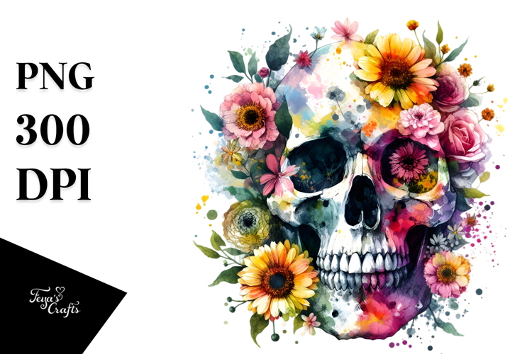 Similar Design Products to Colorful Grungy Skull with Spring Flowers PNG