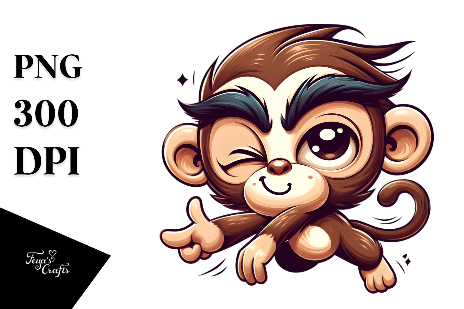 Cartoon Jumping Monkey Smirk Sublimation Vectorart Sass Eyebrows Winkingeye