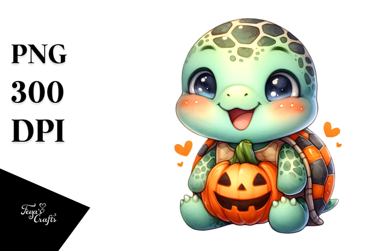 Energetic Baby Turtle for Halloween, PNG example image 1