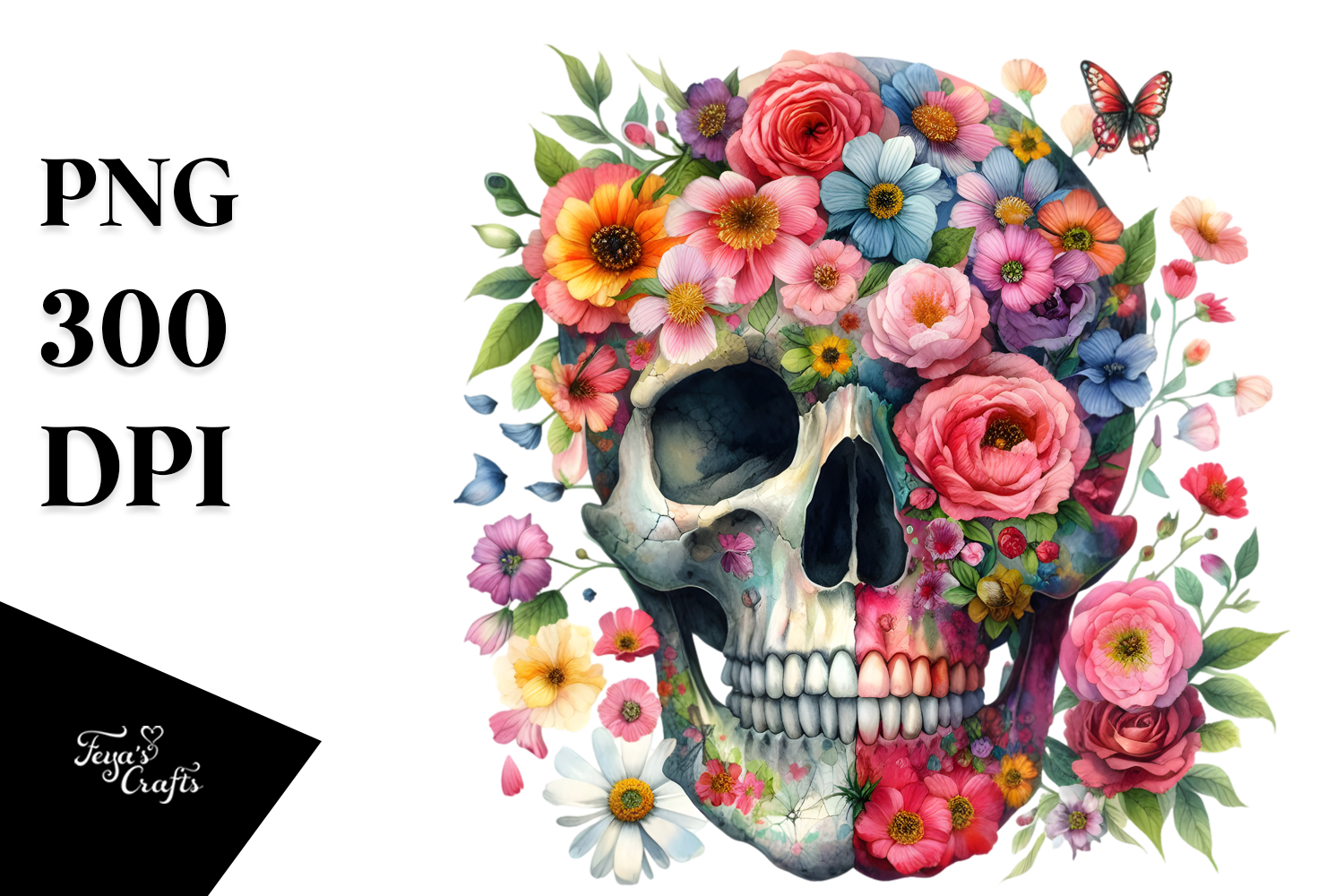 Similar Design Products to Colorful Flower Skull, PNG