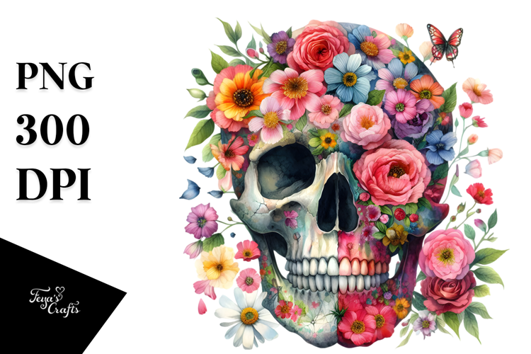 Colorful Flower Skull, PNG example image 1