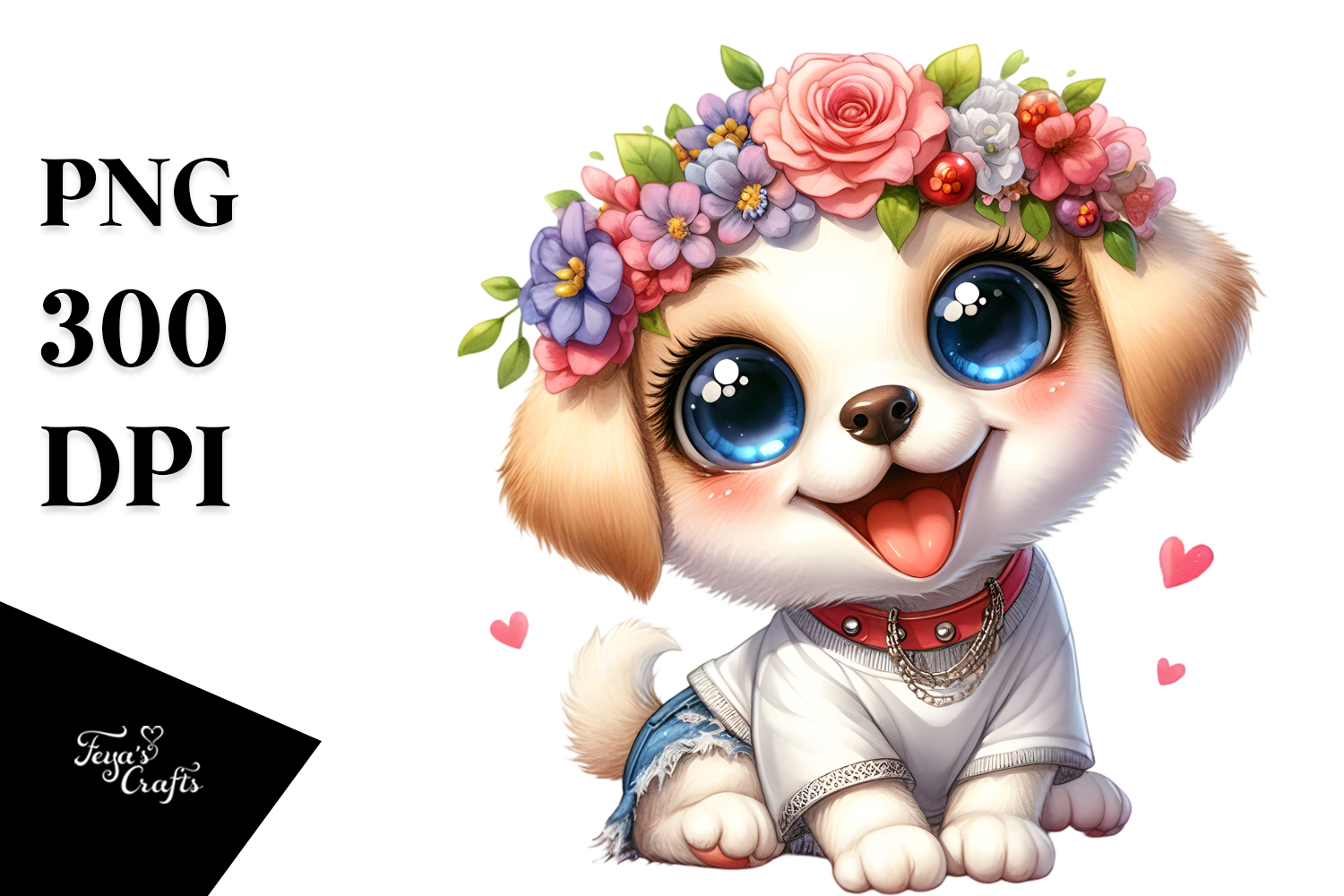 Similar Design Products to Mischievous Puppy with Flower Crown, PNG