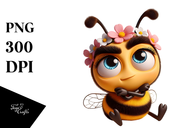 Cartoon Bee Sublimation Eyebrows Digitalpainting Flowercrown Cross-eyed Side-eye