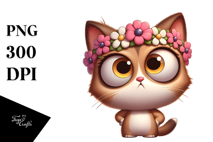 Cartoon Kitten Sublimation Vectorart Exaggerated Flowercrown Cross-eyed Side-eye