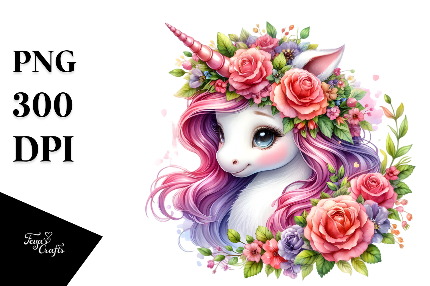Similar Design Products to Cute Unicorn with Floral Wreath PNG