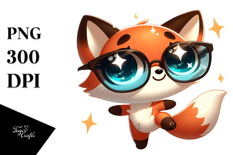 Cute Cartoon Fox with Oversized Sunglasses PNG example image 1