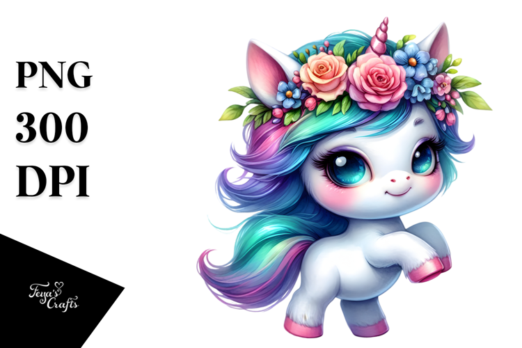 Dancing Unicorn with Floral Wreath PNG example image 1