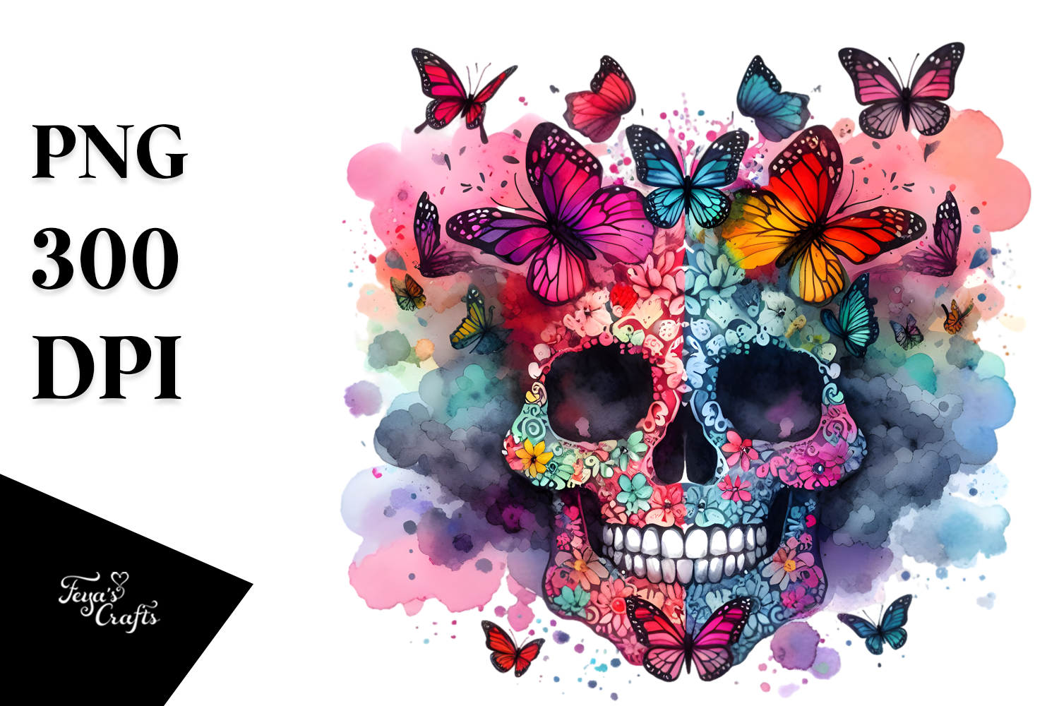 Sticker Summer Skull Colorful Flower Png Sublimation Cloudofdust Butterflysilhouettes