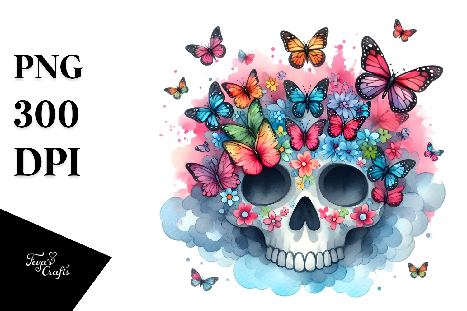 Similar Design Products to Skull with Butterfly Silhouettes PNG