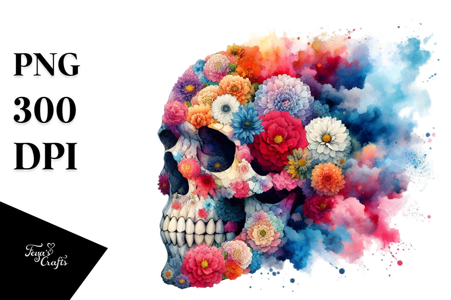 Similar Design Products to Grungy Skull with Spring Flowers PNG