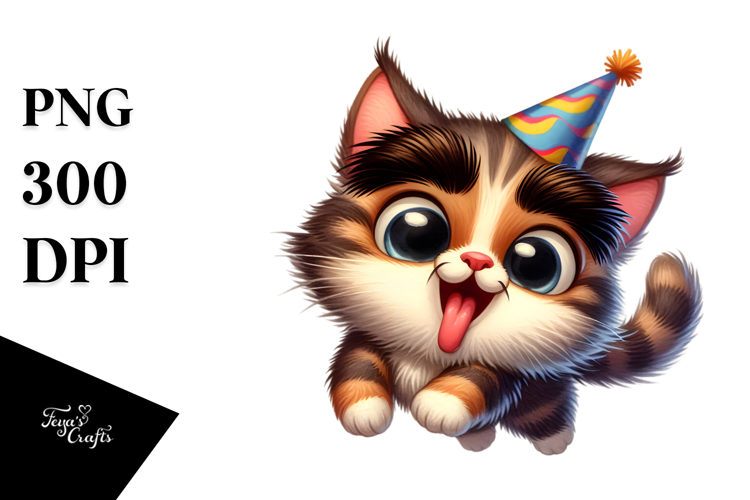 Curious Kitten with Party Hat, High-Res PNG example image 1