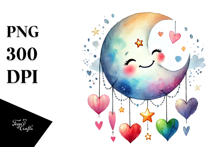 Sticker Summer Hearts Flower Png Moon Sublimation Translucent Washedwatercolor