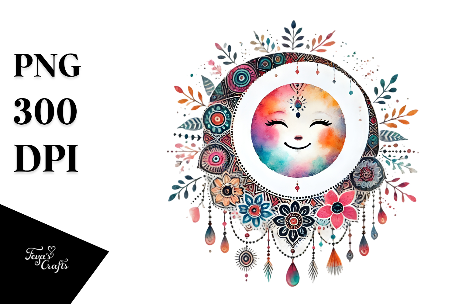 Watercolor Sticker Summer Flower Boho Png Smiling Sublimation Halfmoon