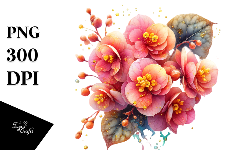 Sticker Summer Flower Png Sublimation Begonia Watercolorsplash Goldeninsertions Glass-likematerial