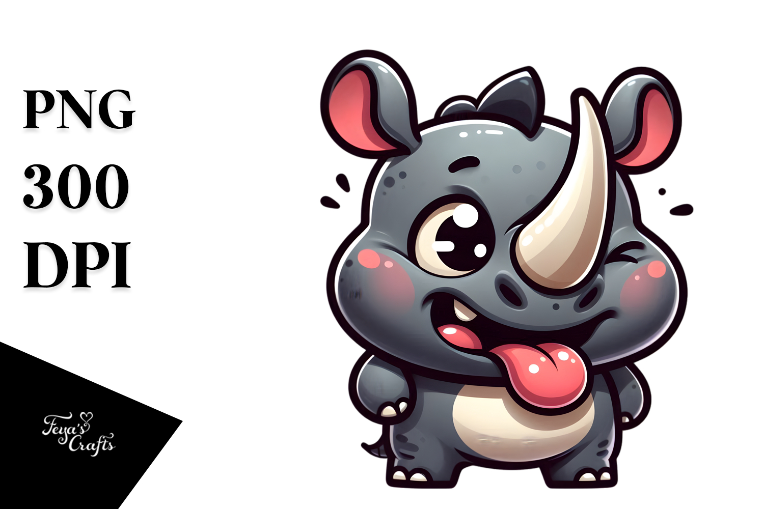 Sticker Summer Flower Png Expressive Rhino Sublimation Anthropomorphicfeatures Tongue-out