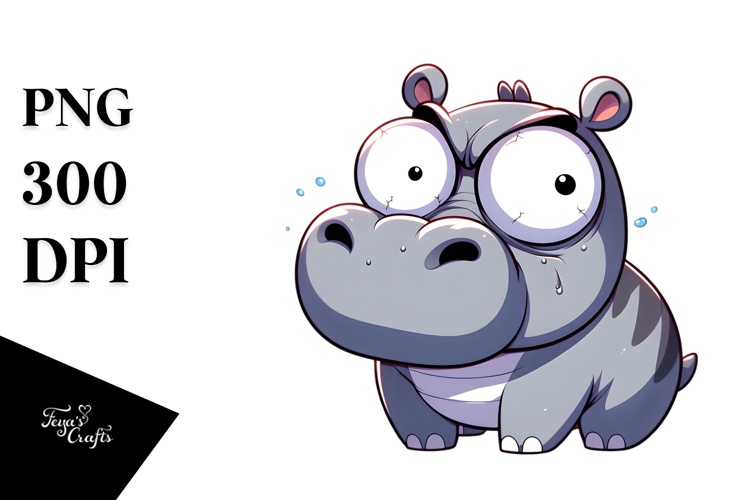 Cute Hippo with Exaggerated Eyes, PNG example image 1