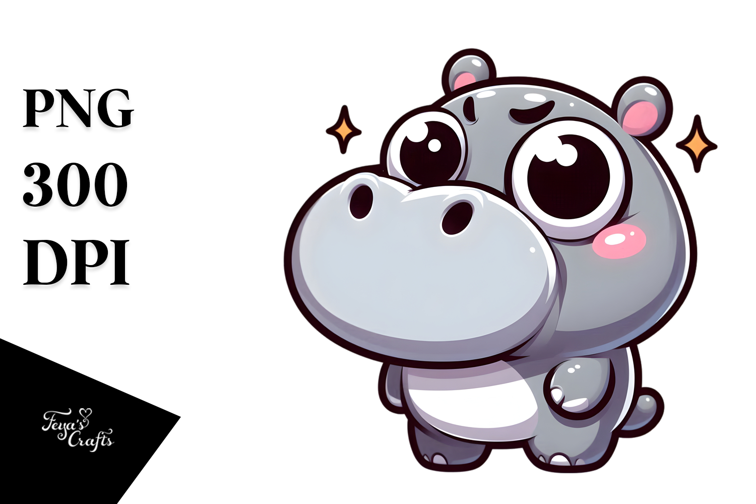 Playful Hippo with Sarcastic Eyes, PNG example image 1