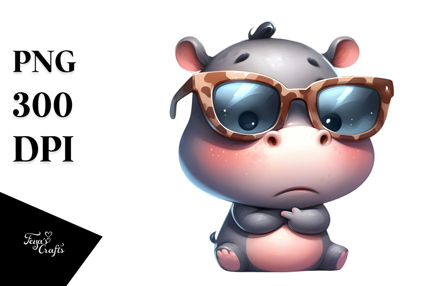 Sarcastic Hippo in Oversized Sunglasses, PNG example image 1