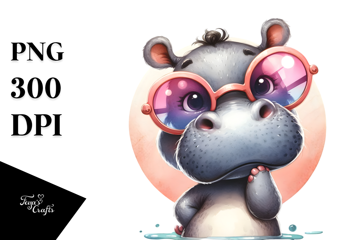 Similar Design Products to Playful Hippo with Sunglasses, PNG