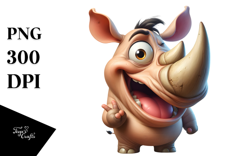 Whimsical Rhino with Pure Joy, PNG example image 1