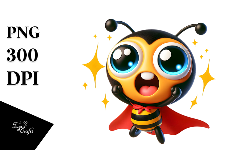 Similar Design Products to Excited Bee with Superhero Cape, PNG