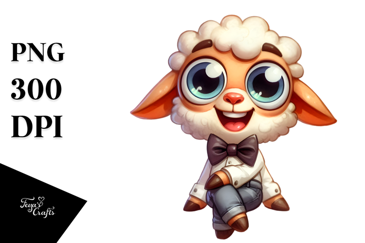 Excited Lamb with Stylish Bow Tie, PNG example image 1