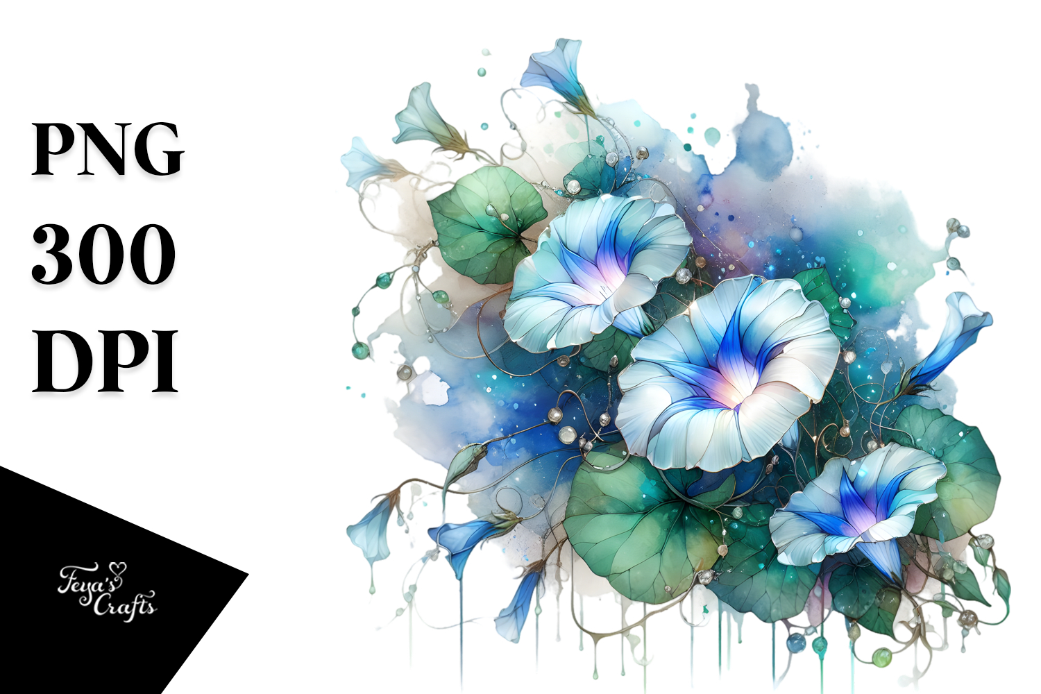 Sticker Summer Flower Png Sublimation Watercolorsplash Glassmaterial Metalicinsertions Morningglory