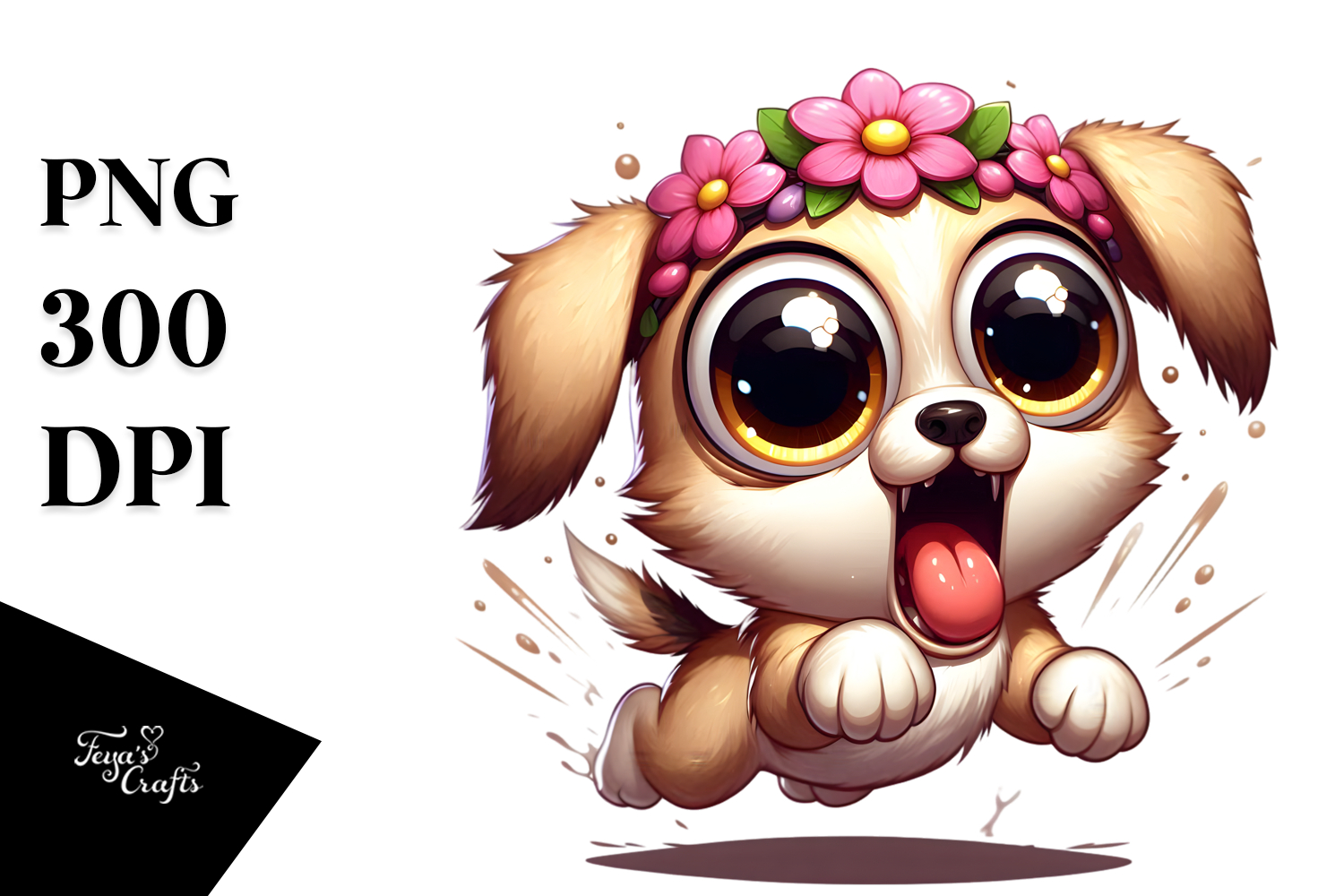 Cartoon Puppy Expressive Goofy Vectorart Exaggerated Flowercrown Dramaticdespair