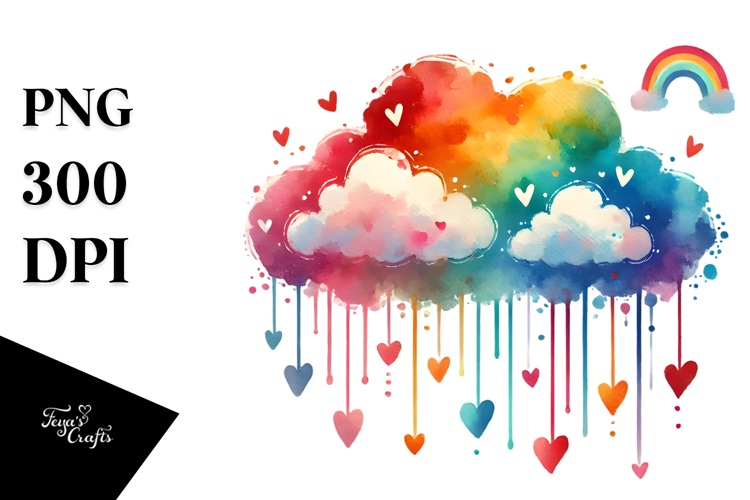 Watercolor Hearts Colorful Washed Cloud Smiling Whitebackground Digitalpainting