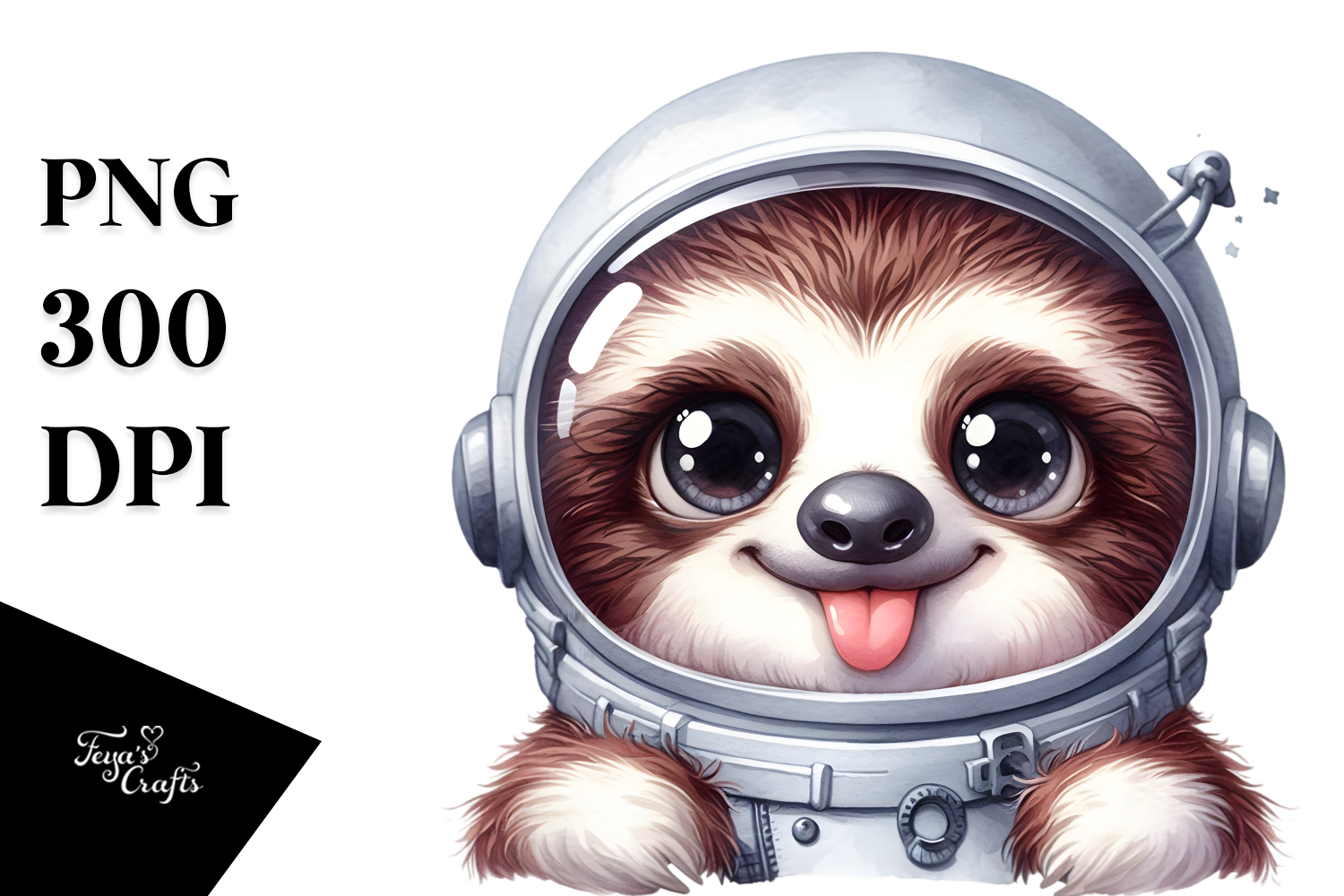 Cute Baby Sloth with Astronaut Helmet PNG example image 1