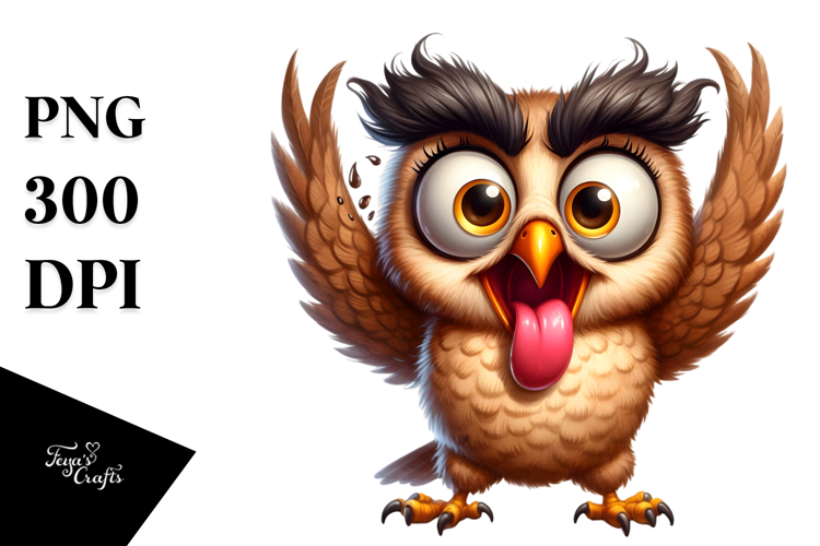 Cartoon Sticker Summer Flower Owl Png Sublimation Human-likeeyebrows Tongue-outface
