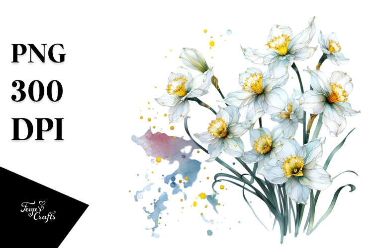 Watercolor Sticker Summer Flower Golden Png Glass Sublimation Narcissus