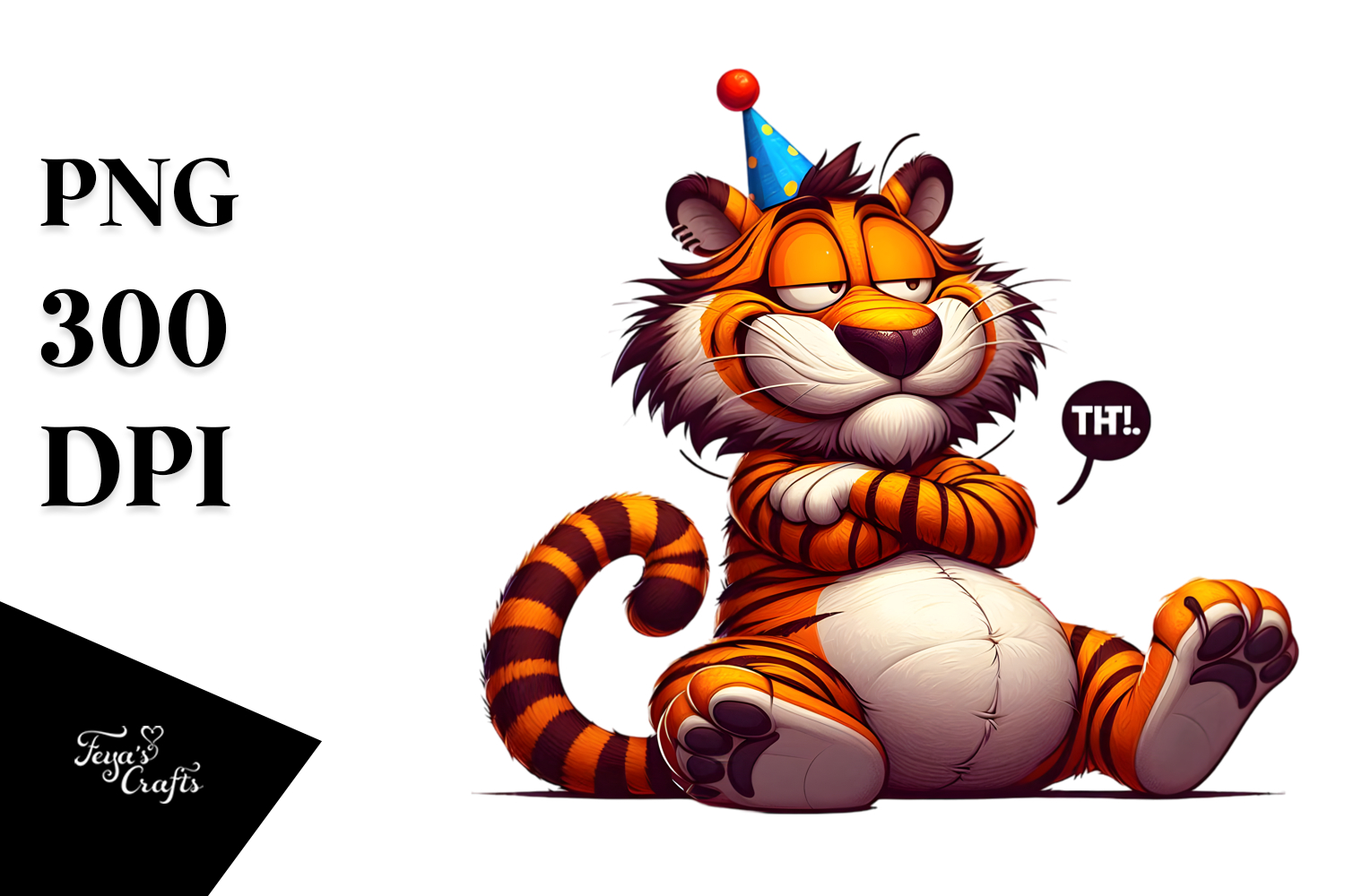 Cartoon Tiger Expressive Goofy Whitebackground Seriousness Partyhat Furtexture