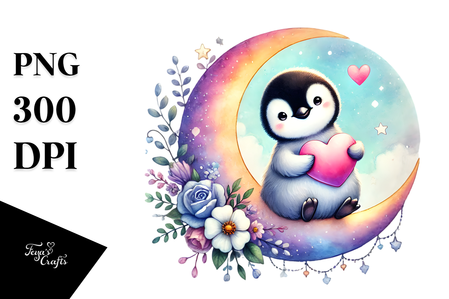 Adorning Baby Penguin on Half Moon, PNG example image 1