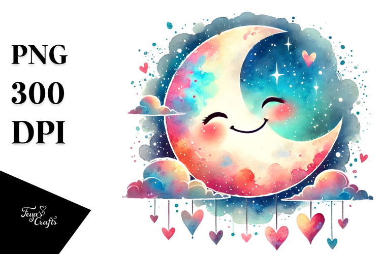 Smiling Moon with Rainbow PNG example image 1