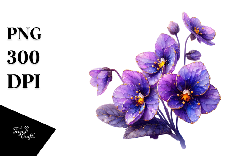 Violet with Metallic Insertions, Watercolor PNG example image 1