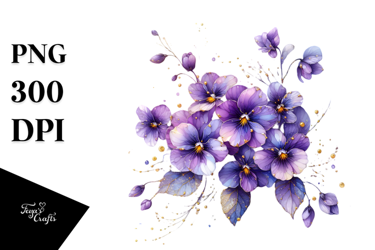 Violet with Golden Insertions, Watercolor PNG example image 1