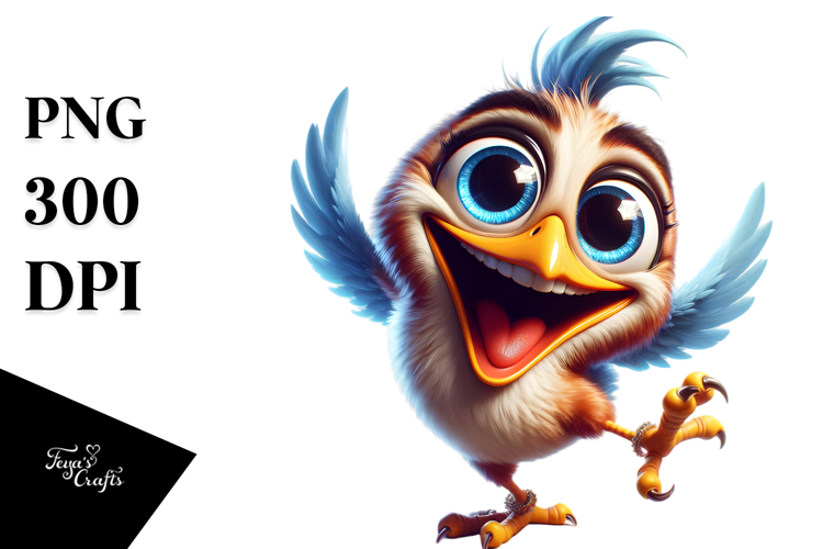 Goofy Cartoon Bird, Over-the-Top Excitement PNG example image 1