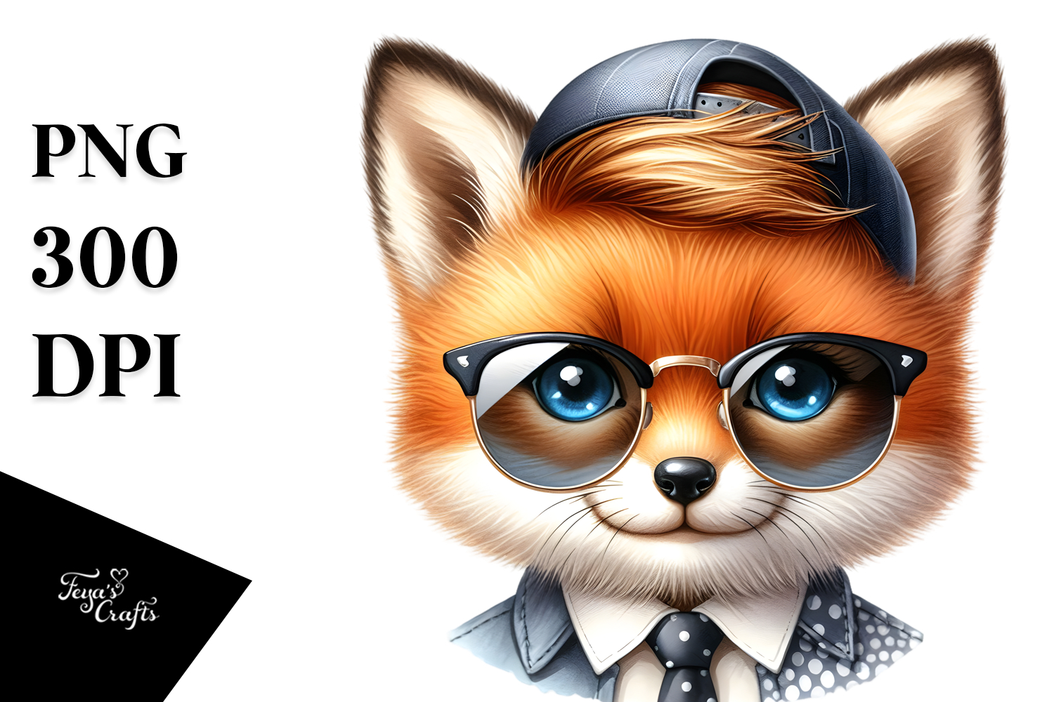 Energetic Baby Fox with Hat and Sunglasses PNG example image 1