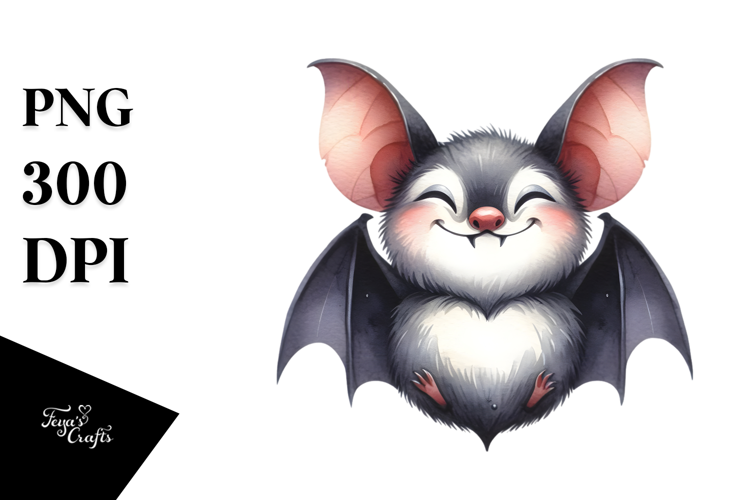 Funny Simple Bat Watercolor PNG example image 1