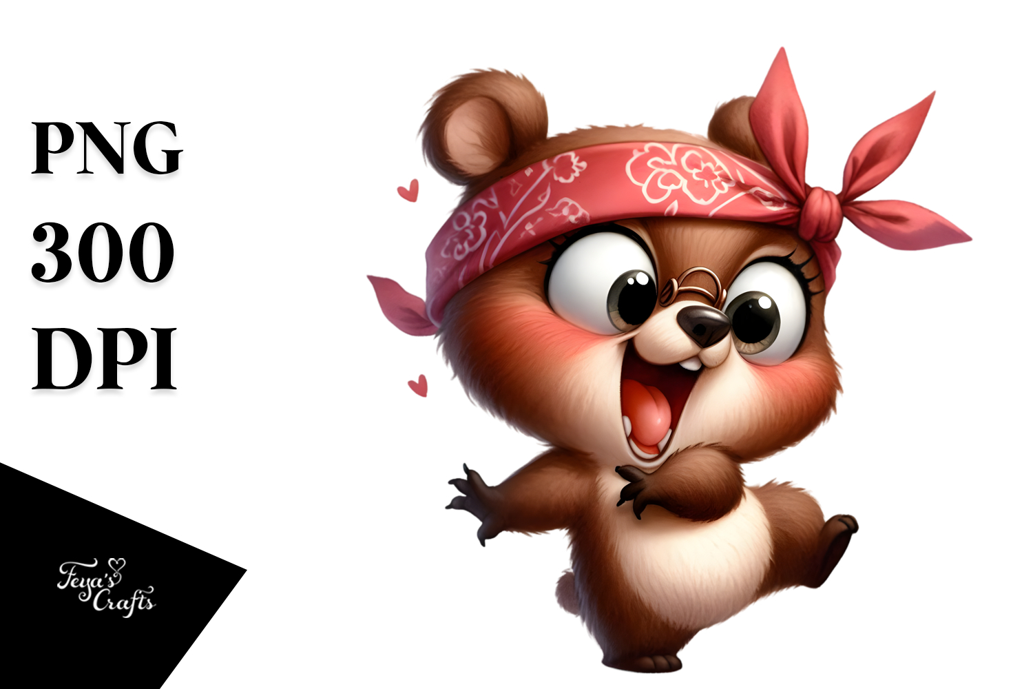 Cute Bear with Bandana, Over-the-Top Excitement PNG example image 1