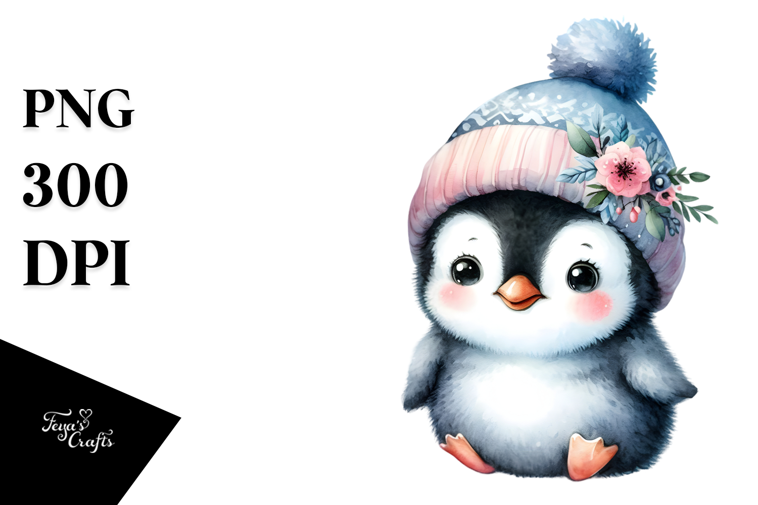 Energetic Baby Penguin in Watercolor PNG example image 1