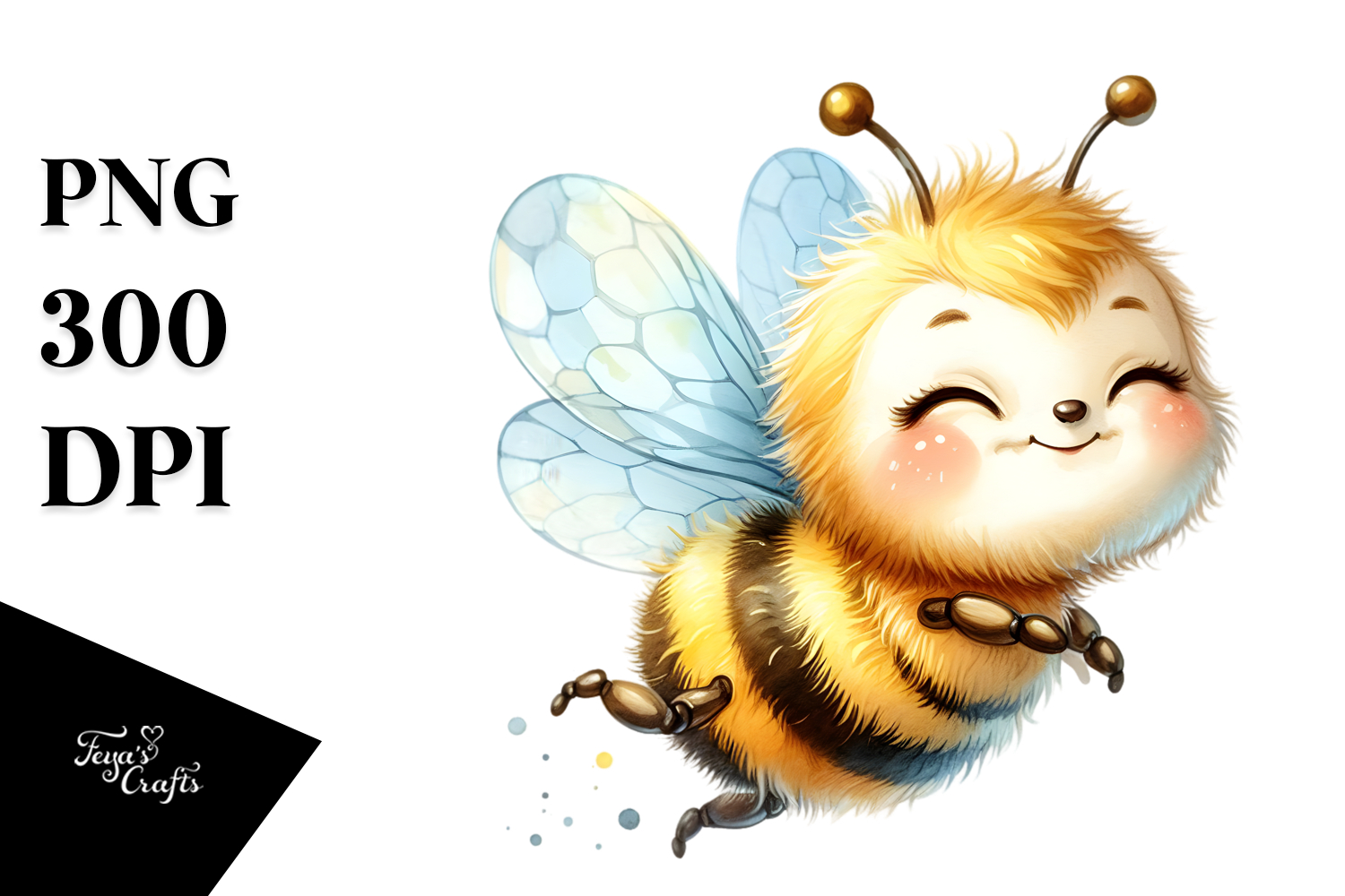 Cute Baby Bee in Watercolor PNG example image 1