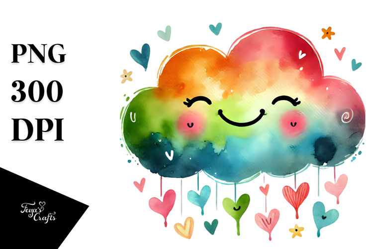 Colorful Smiling Cloud with Hearts PNG example image 1
