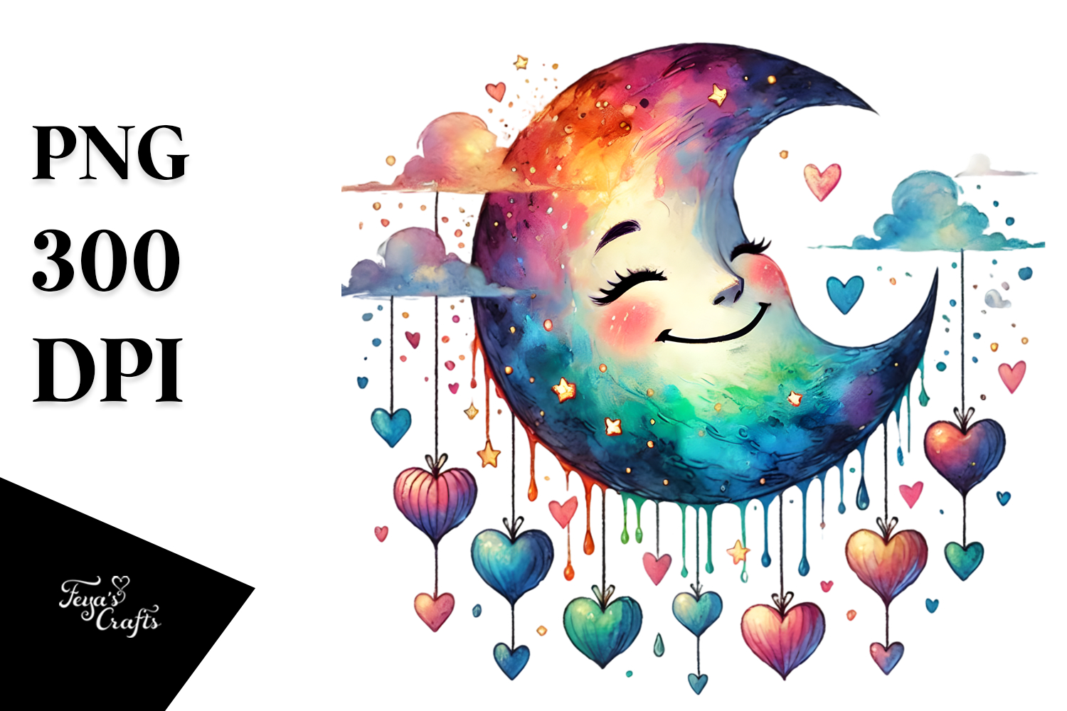 Sticker Summer Hearts Flower Png Smiling Sublimation Halfmoon Digitalpainting