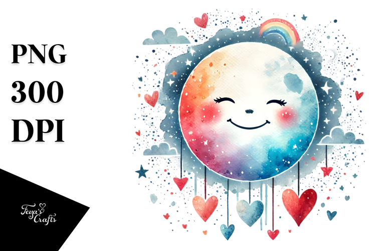 Watercolor Sticker Summer Hearts Colorful Flower Png Moon Sublimation