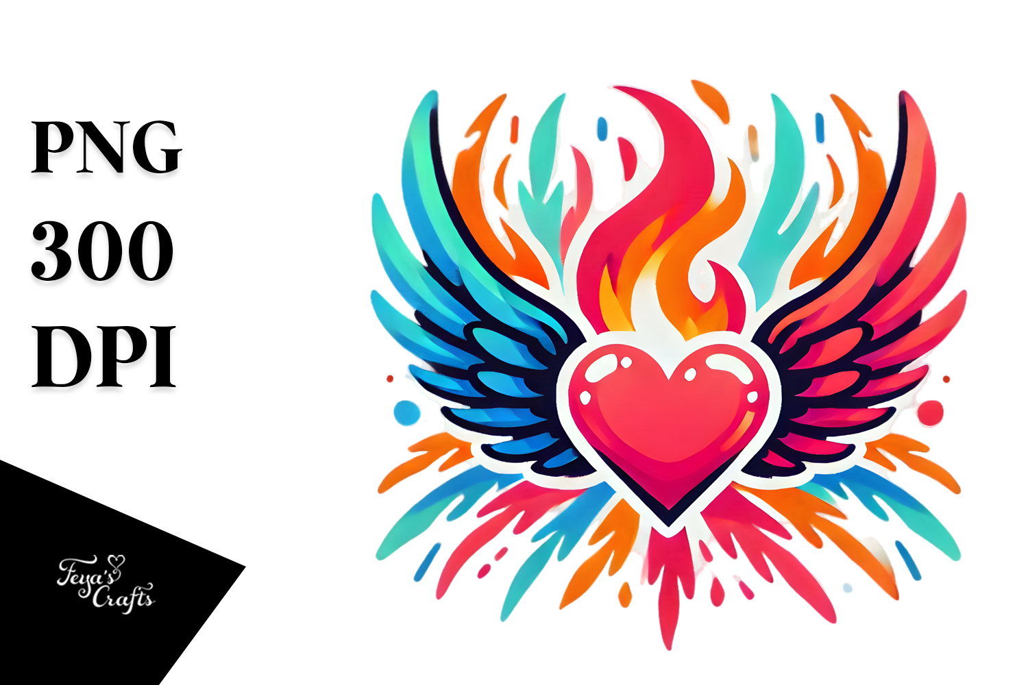 Sticker Summer Heart Png Fire Wings Sublimation Paintbrushstyle