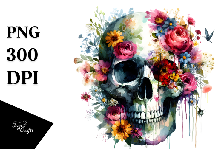 Watercolor Sticker Summer Skull Colorful Flower Png Grungy Sublimation