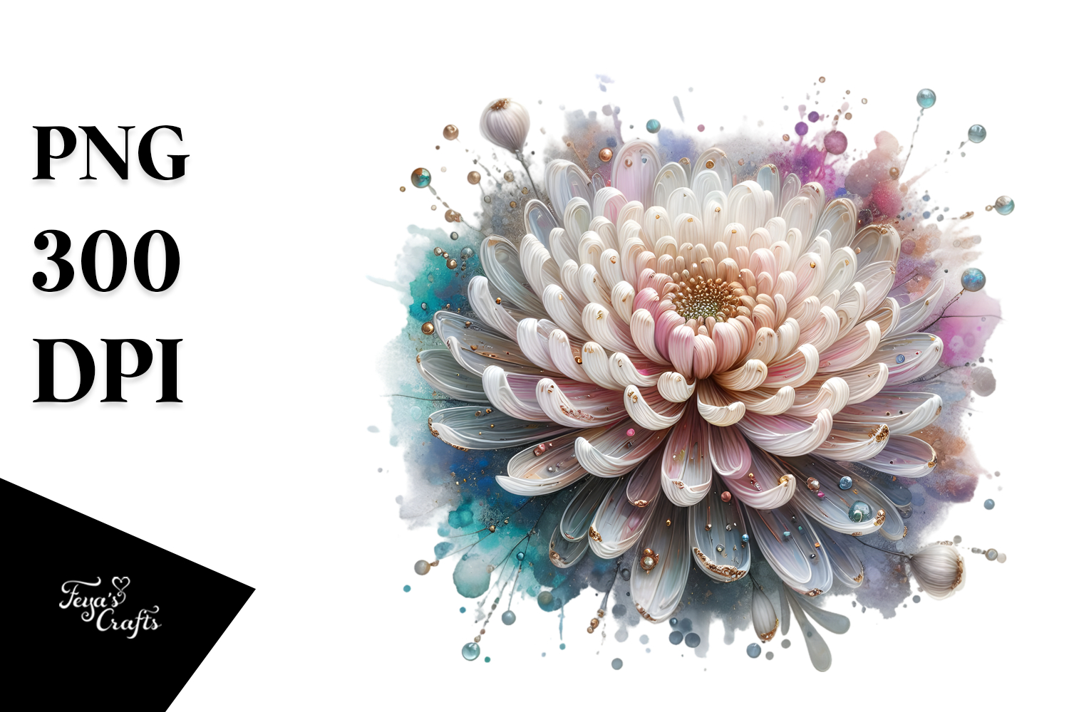 Sticker Summer Flower Png Chrysanthemum Sublimation Watercolorsplash Glassmaterial Metallicinsertions