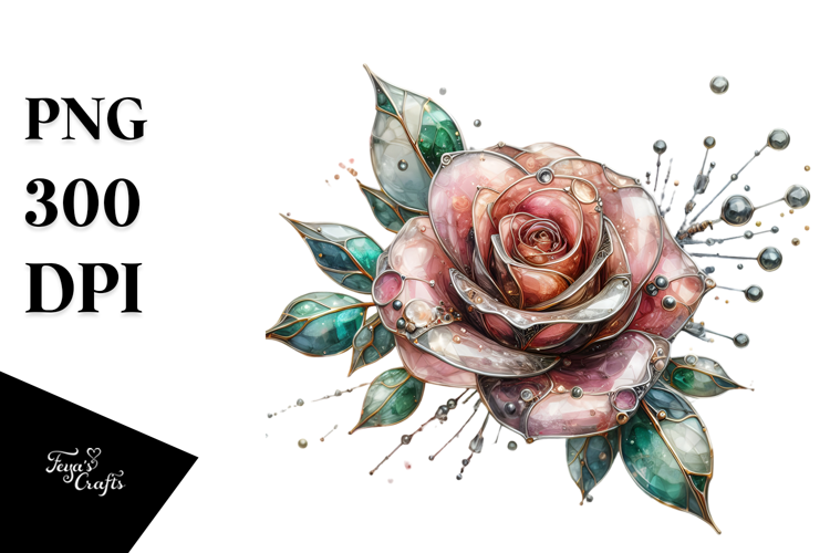 Sticker Summer Flower Rose Png Sublimation Watercolorsplash Glassmaterial Metallicinsertions